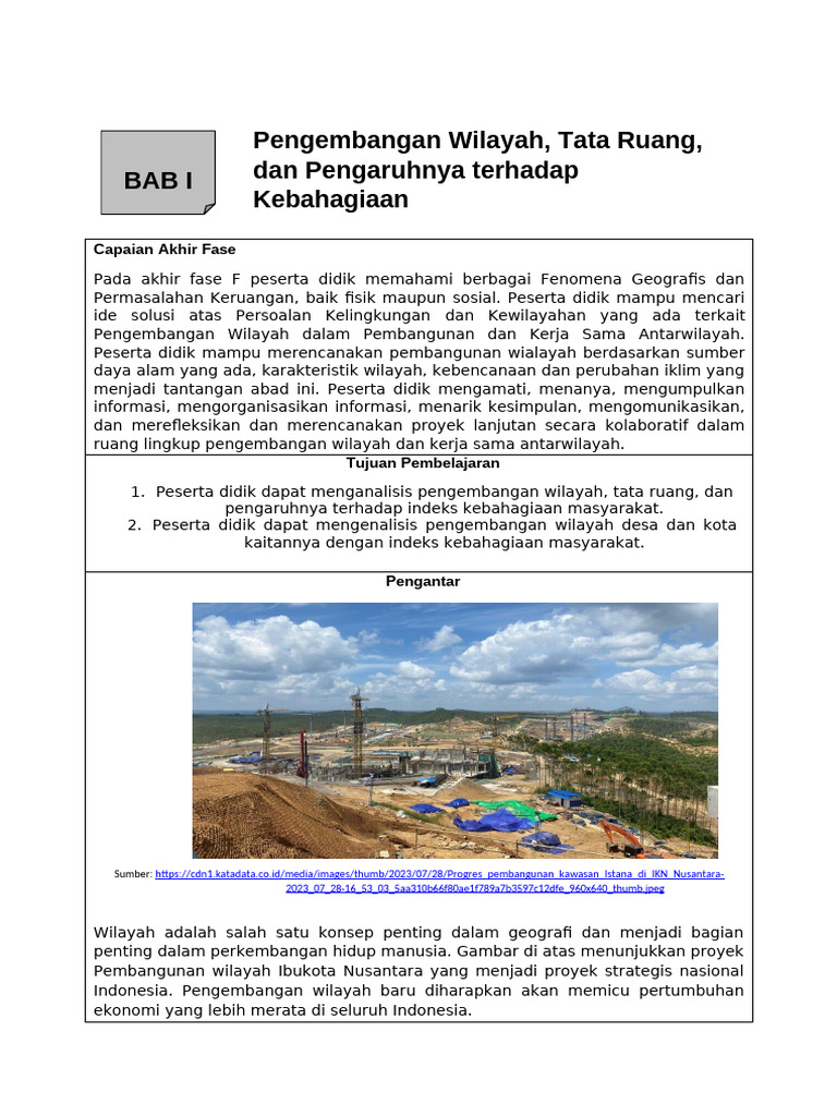 1. Peserta didik dapat menganalisis pengembangan wilayah, tata ruang, dan