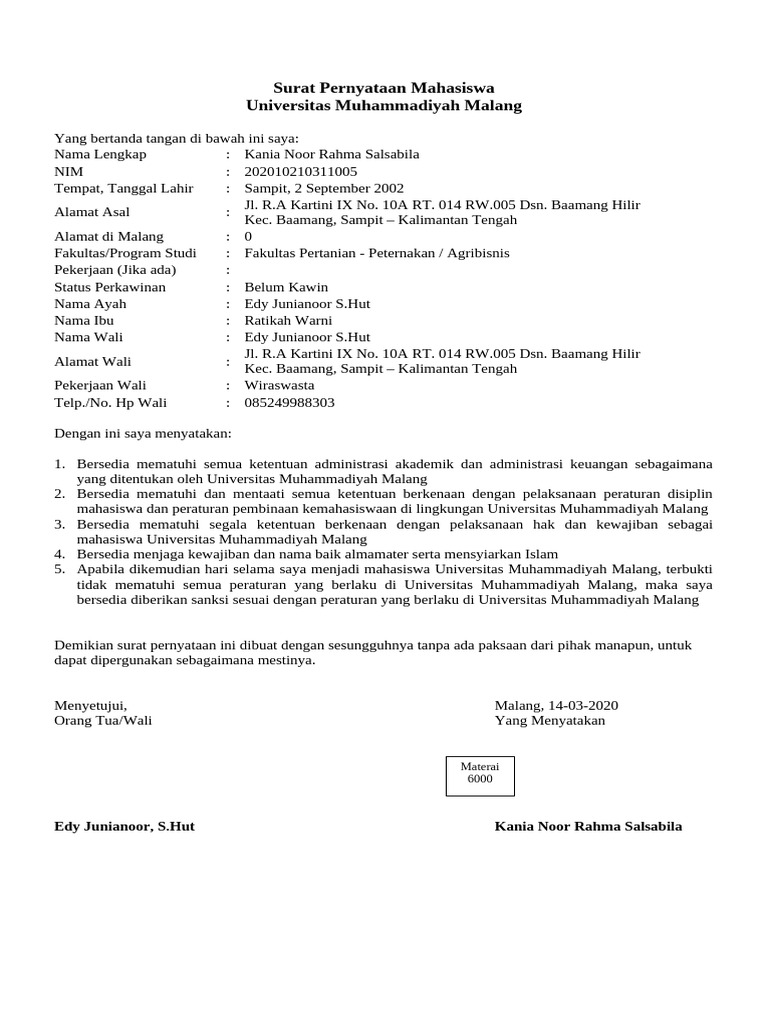 5. Apabila dikemudian hari selama saya menjadi mahasiswa Universitas Muhammadiyah Malang, terbukti