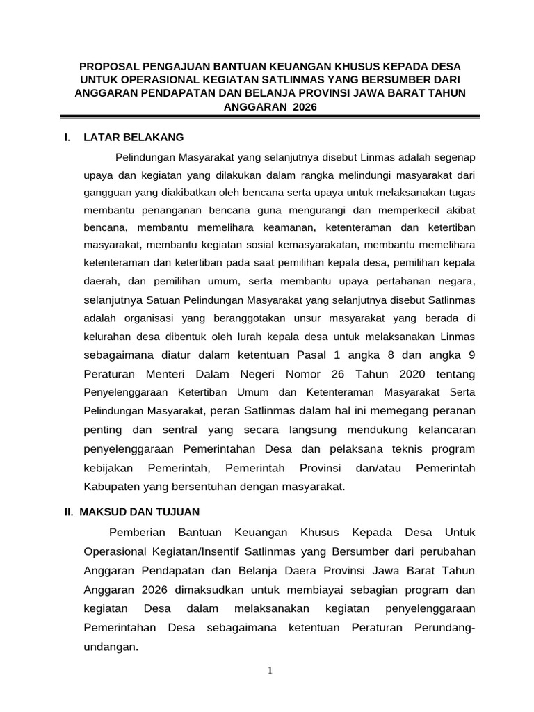 Demikian uraian proposal singkat pelaksanaan Bantuan Keuangan Khusus