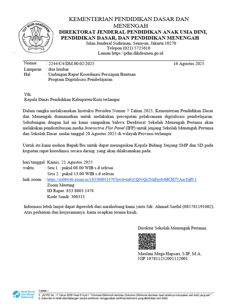 Nomor : 2244/C4/DM.00.02/2025 16 Agustus 2025
