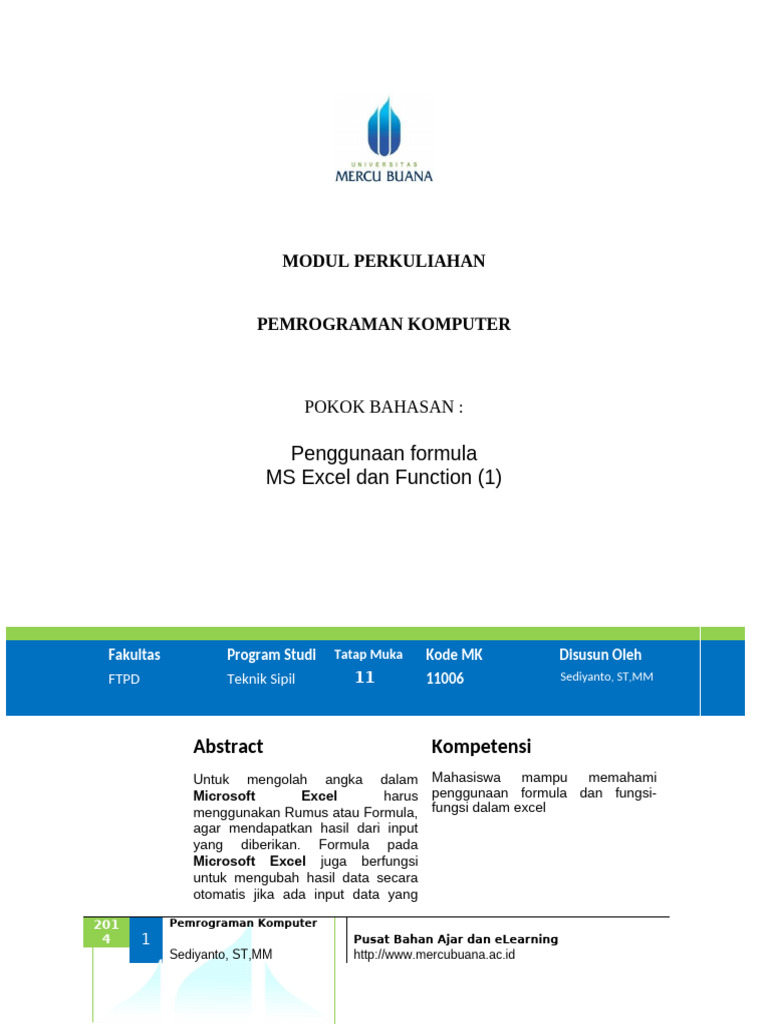 Sediyanto, ST,MM http://www.mercubuana.ac.id