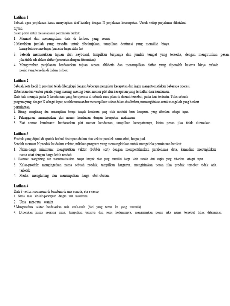 1. Nama-harga minimum: mengurutkan vektor (bubble sort) dengan mempertahankan paralelisme data, kemudian menunjukkan
