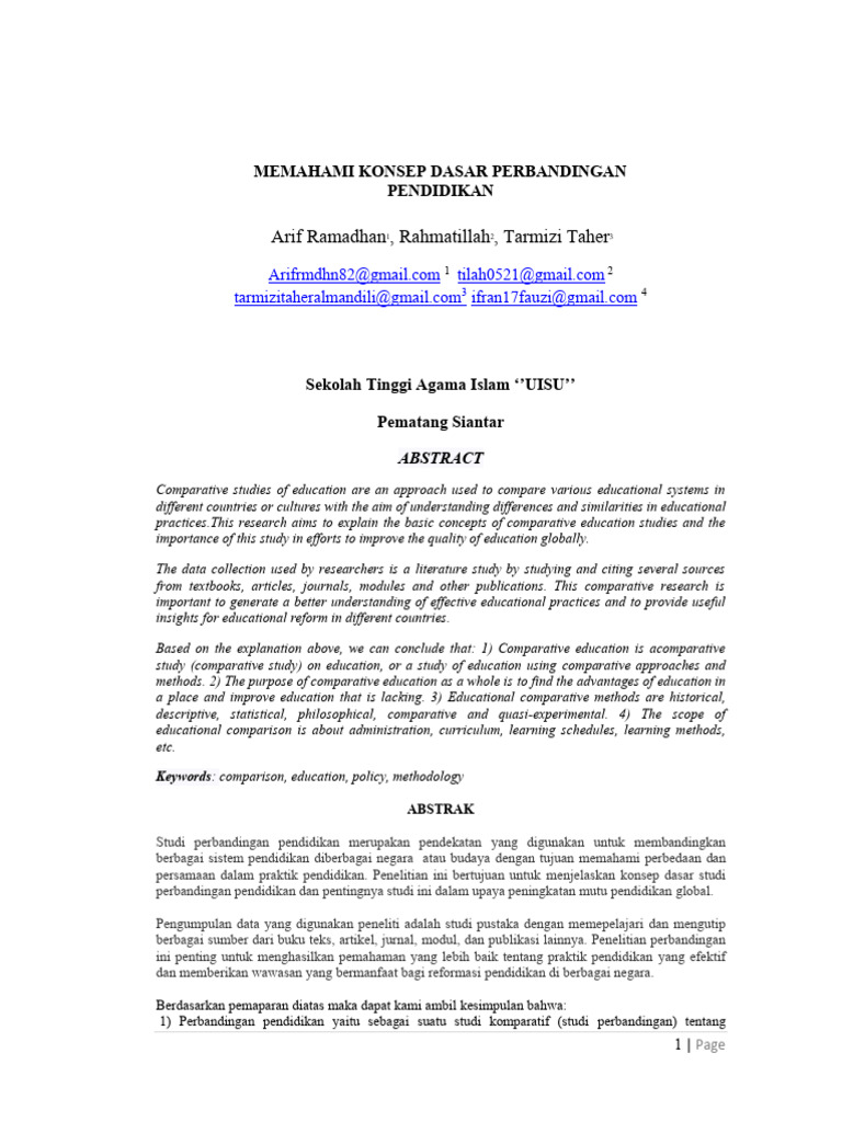 Kata Kunci : Perbandingan, Pendidikan, Kebijakan, Metodologi