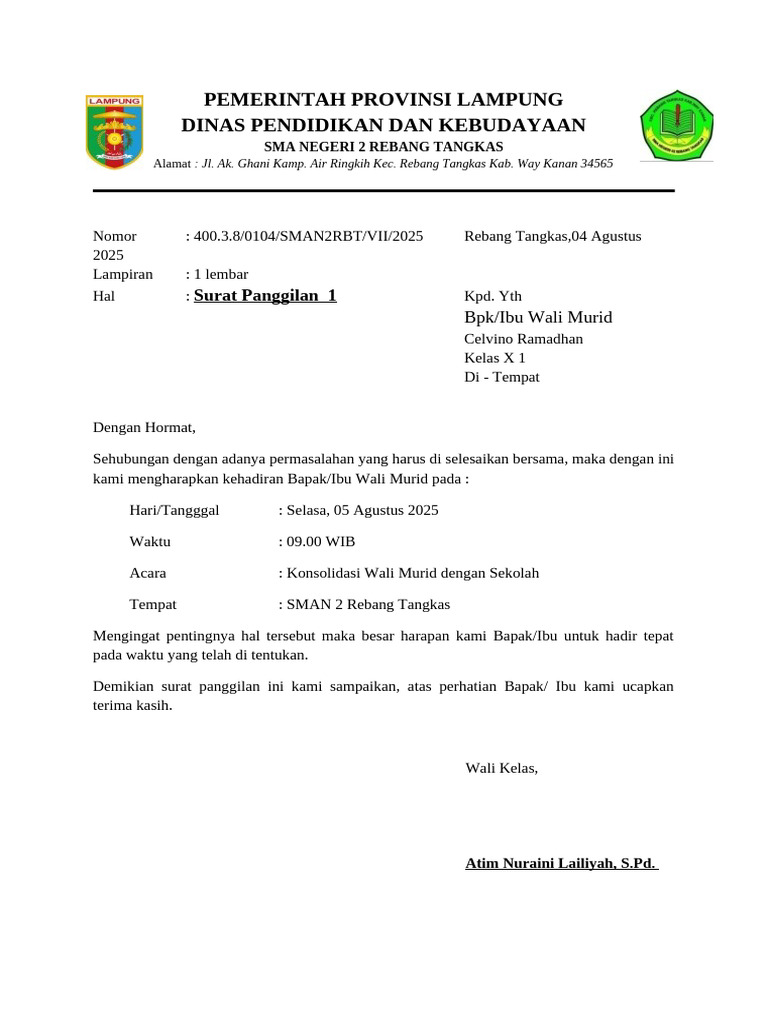 Demikian surat panggilan ini kami sampaikan, atas perhatian Bapak/ Ibu kami ucapkan