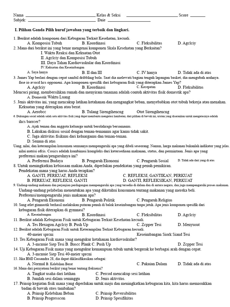 18. Berjalan, menari, lunges, berjalan cepat, squat dan plank adalah contoh dari prinsip FITT apa?