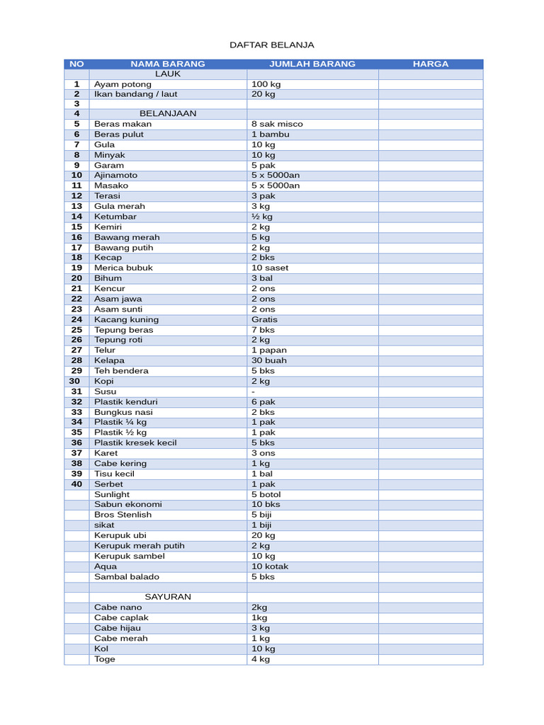 DAFTAR BELANJA