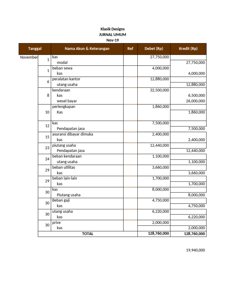 Tanggal Nama Akun & Keterangan Ref Debet (Rp) Kredit (Rp)