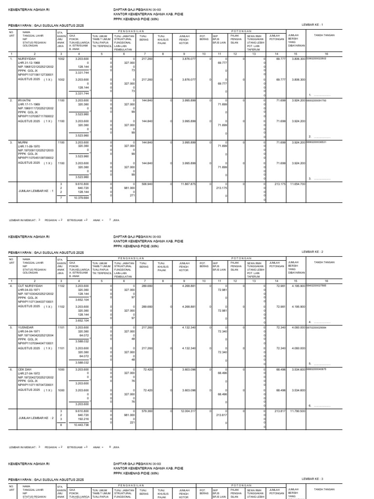 PEMBAYARAN : GAJI SUSULAN AGUSTUS 2025 LEMBAR KE : 3