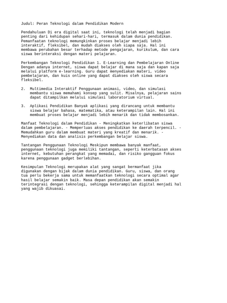 Judul: Peran Teknologi dalam Pendidikan Modern