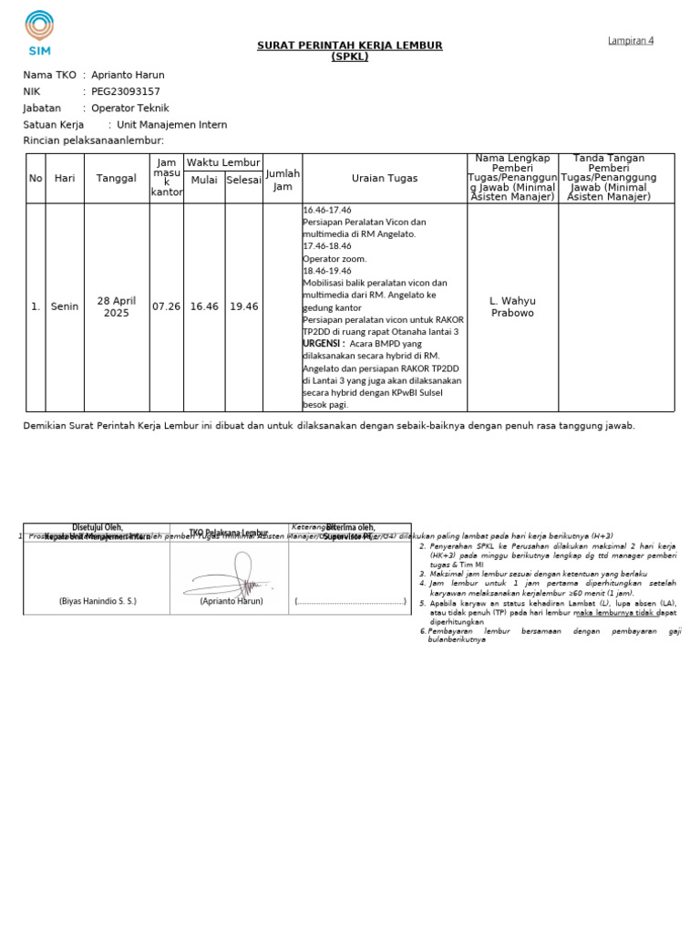 SURAT PERINTAH KERJA LEMBUR