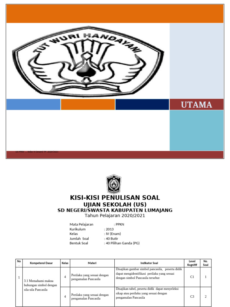 US PPKN ... Kelas VI (enam) TP. 2020/2021