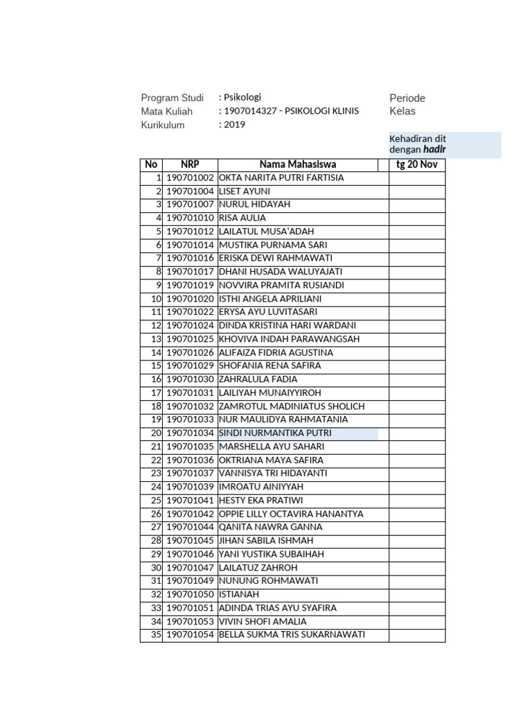 No NRP Nama Mahasiswa tg 20 Nov