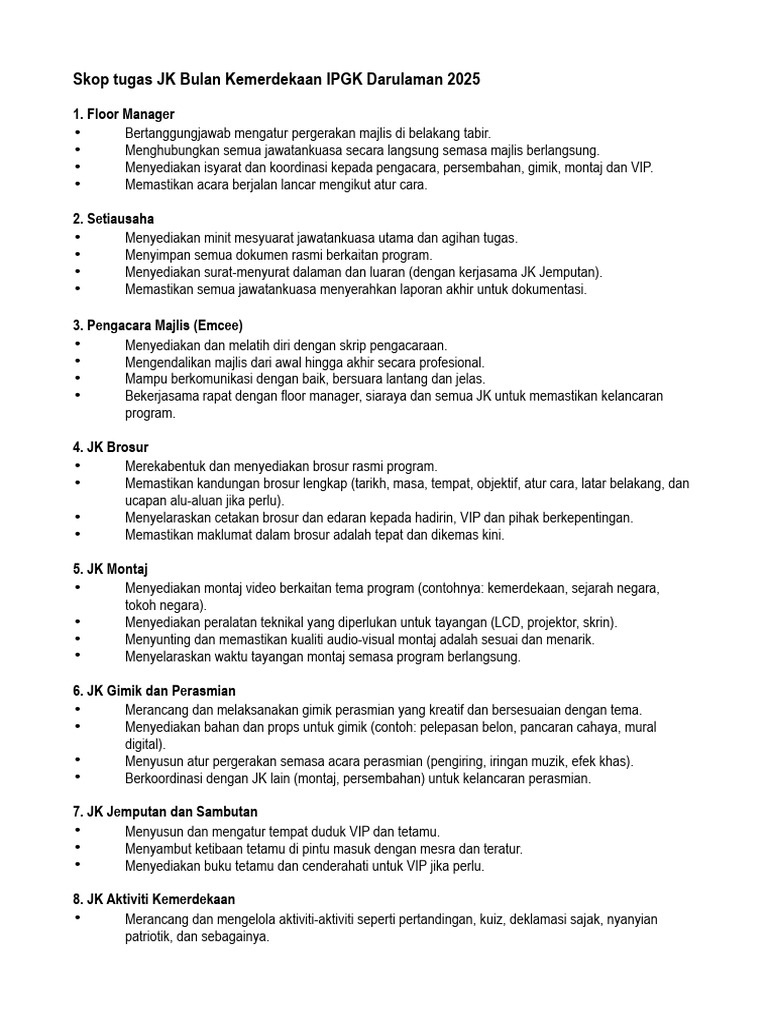 Skop tugas JK Bulan Kemerdekaan IPGK Darulaman 2025