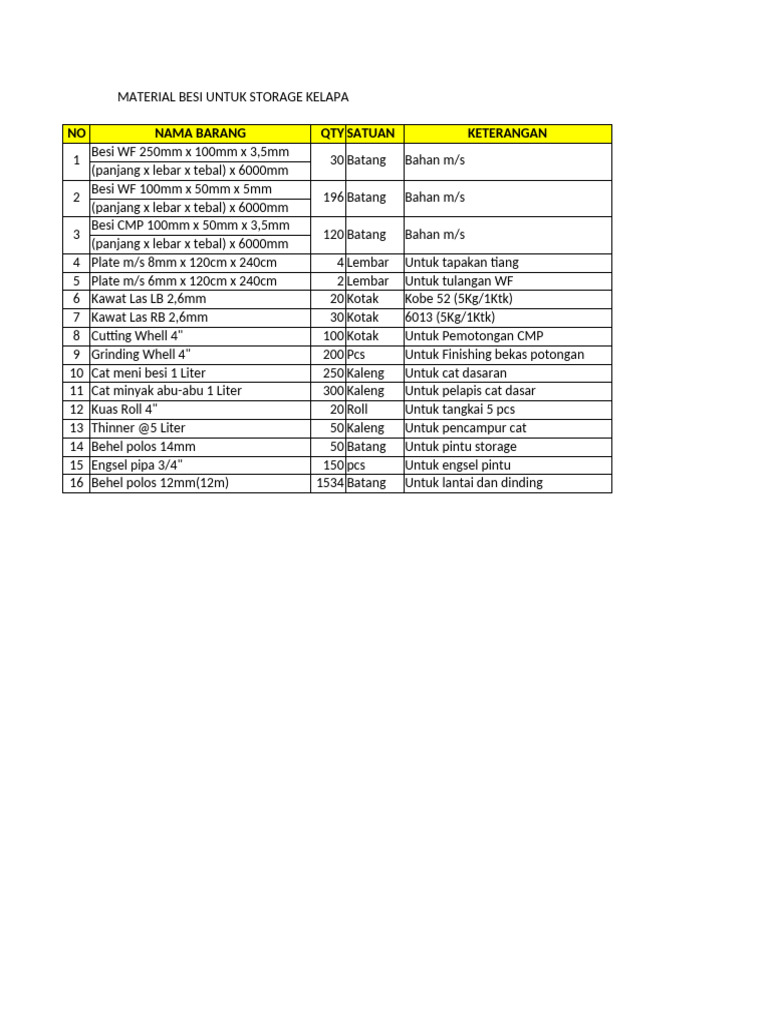 MATERIAL BESI UNTUK STORAGE KELAPA