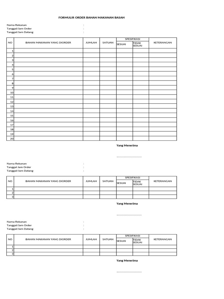 FORMULIR ORDER BAHAN MAKANAN BASAH