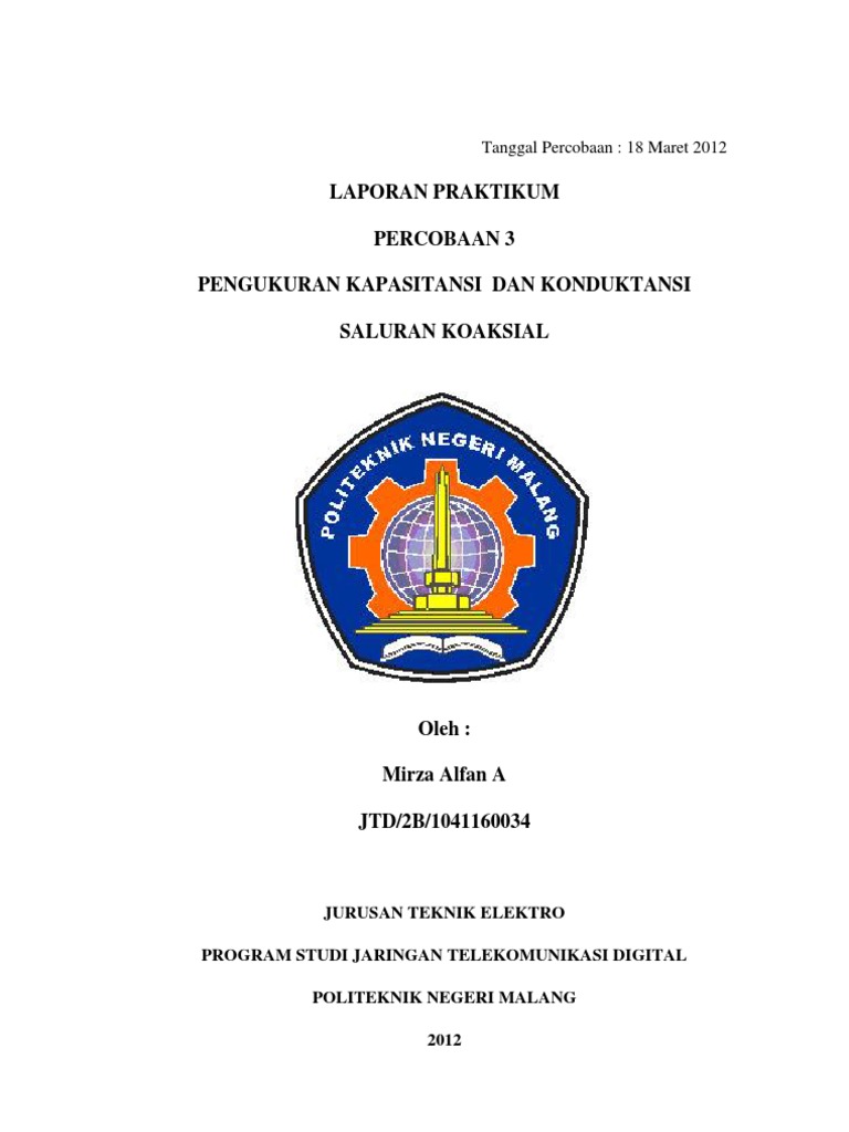 LAPORAN PRAKTIKUM PERCOBAAN 3 PENGUKURAN KAPASITANSI DAN KONDUKTANSI SALURAN KOAKSIAL