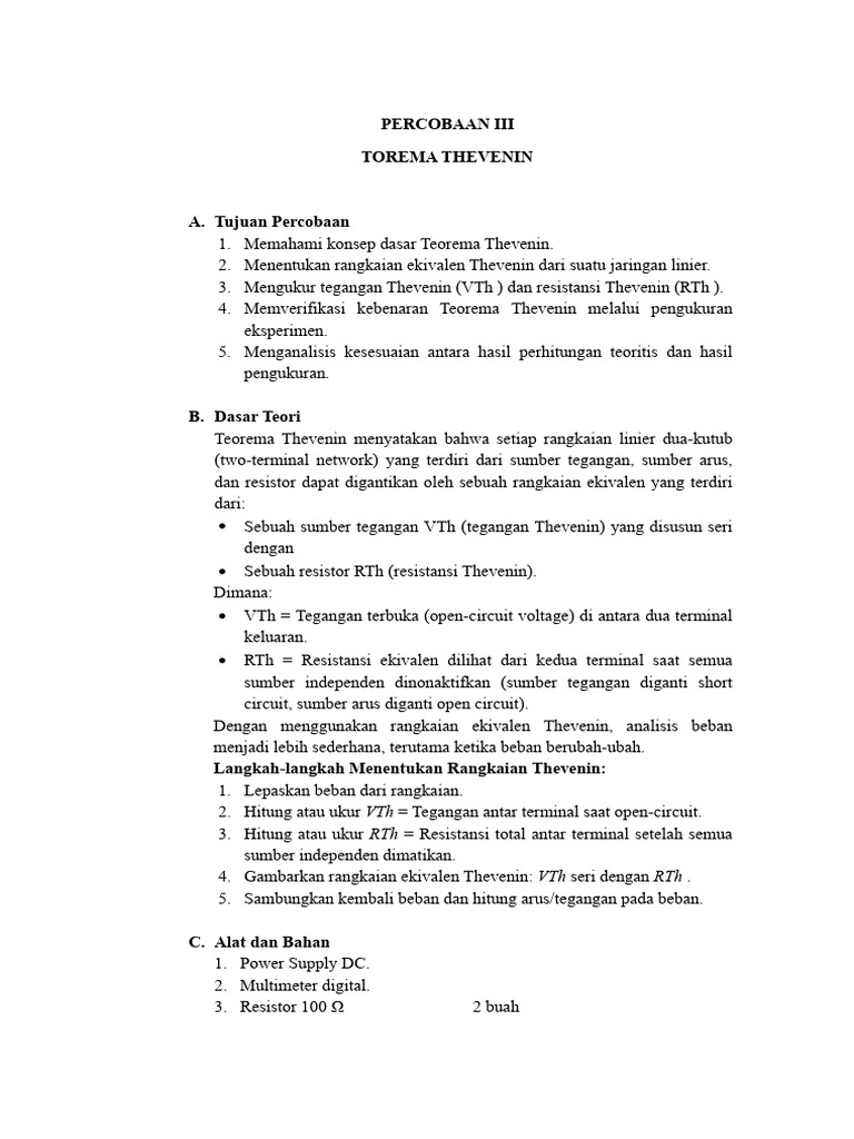 5. Bandingkan dengan rangkaian ekivalen Thevenin