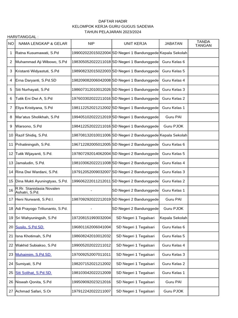 6 Tutik Eni Dwi A, S.Pd 197603302022211016 SD Negeri 1 Bandunggede Guru Kelas 2