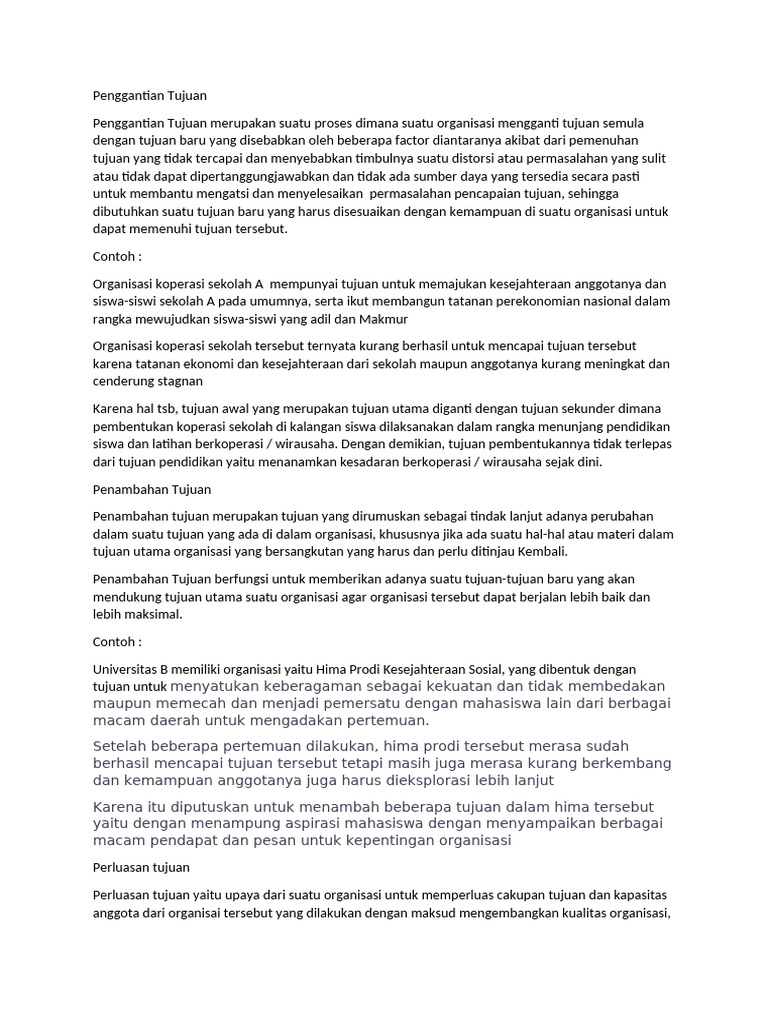 Penggantian Tujuan merupakan suatu proses dimana suatu organisasi mengganti tujuan semula