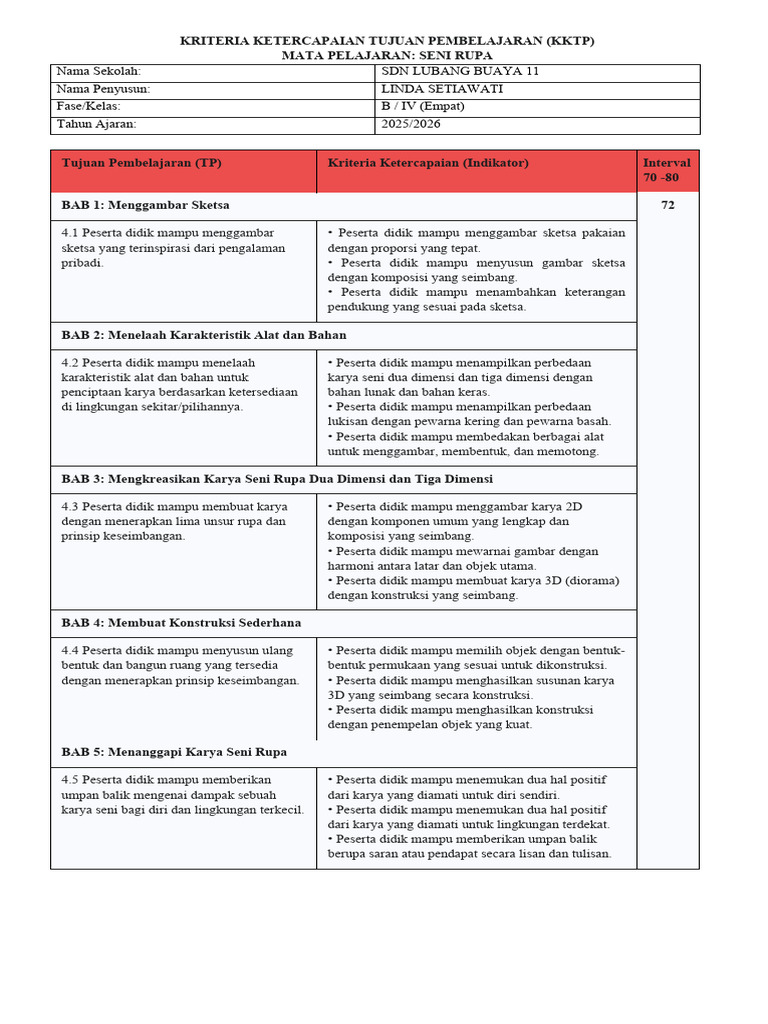 Kriteria Ketercapaian Tujuan Pembelajaran (KKTP) ini disusun menggunakan pendekatan rubrik deskriptif. Guru