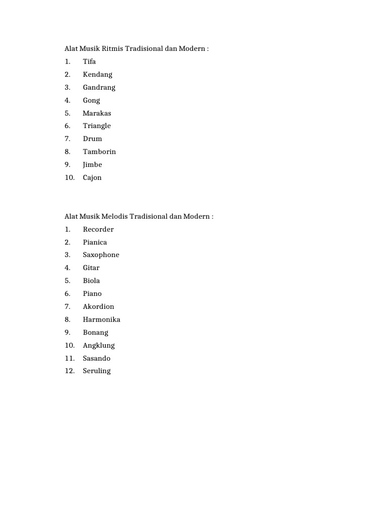 Alat Musik Melodis Tradisional dan Modern :