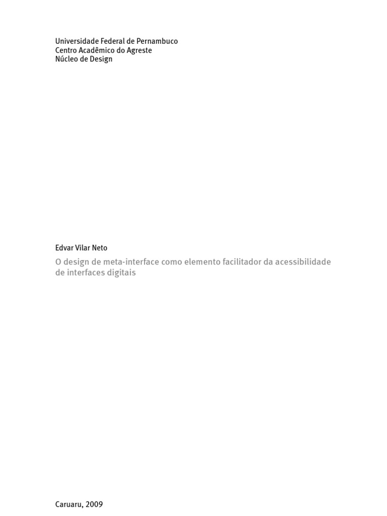 Vilar Neto, Edvar. O design de meta-interface como elemento facilitador da acessibilidade de interfaces digitais / Edvar Vilar Neto – Caruaru: O Autor, 2009. 118 f.