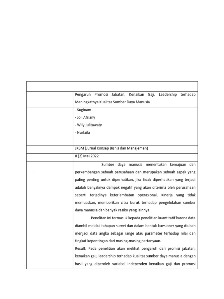 Judul Artikel Pengaruh Promosi Jabatan, Kenaikan Gaji, Leadership terhadap