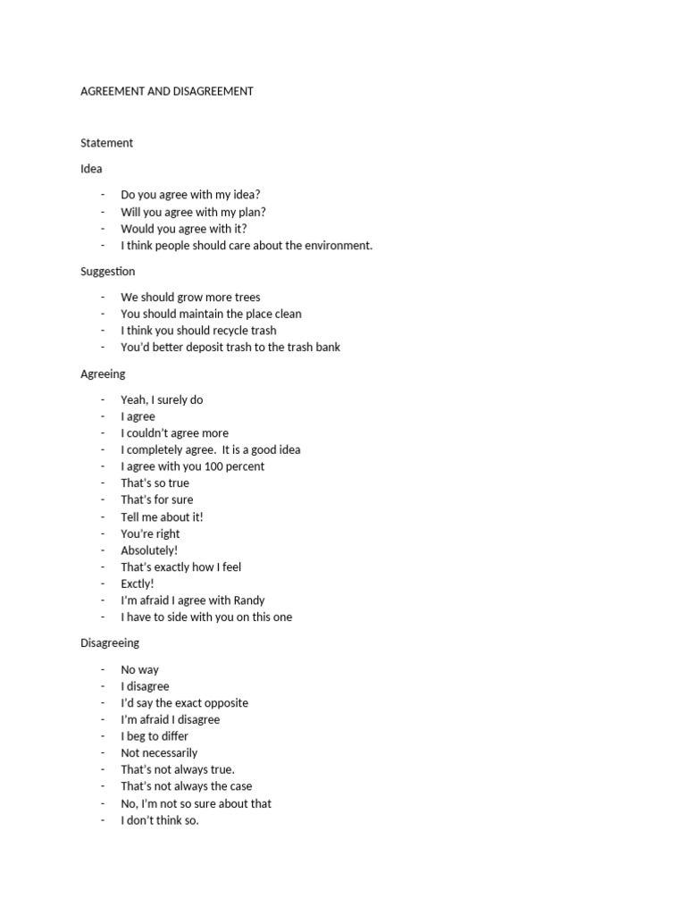 “Disagreement” untuk ketidaksetujuan atau Expression of Agreement and