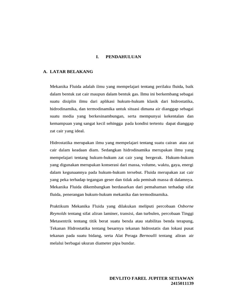 Mekanika Fluida adalah ilmu yang mempelajari tentang perilaku fluida, baik