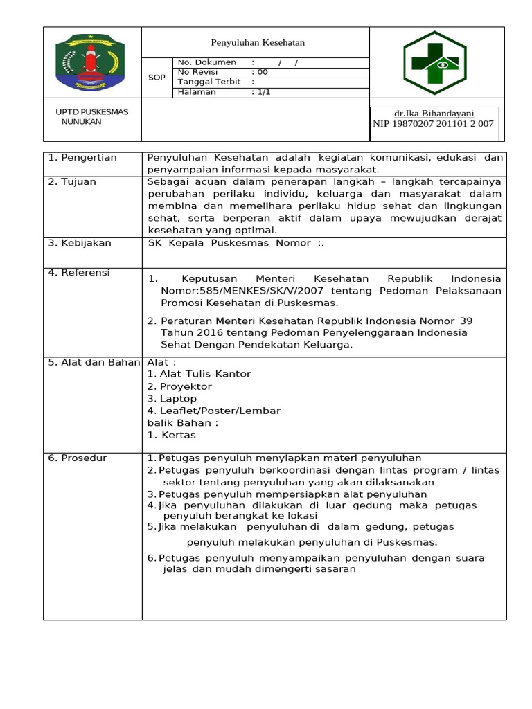 3. Kebijakan SK Kepala Puskesmas Nomor :.