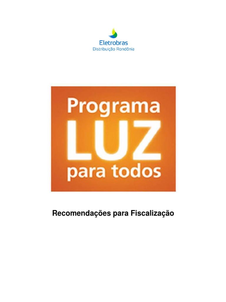 Estas recomendaes tm por objetivo facilitar o dia-a-dia das empreiteiras bem como das equipes de fiscalizao da Eletrobras Distribuio Rondnia. Caso algum detalhe esteje faltoso no mesmo todas as outras normas da Eletrobras Distribuio Rondnia podero ser tomadas como base, bem como os manuais de orientao da ELETROBRAS e tambm o manual de operacionalizao do Programa Luz Para Todos.