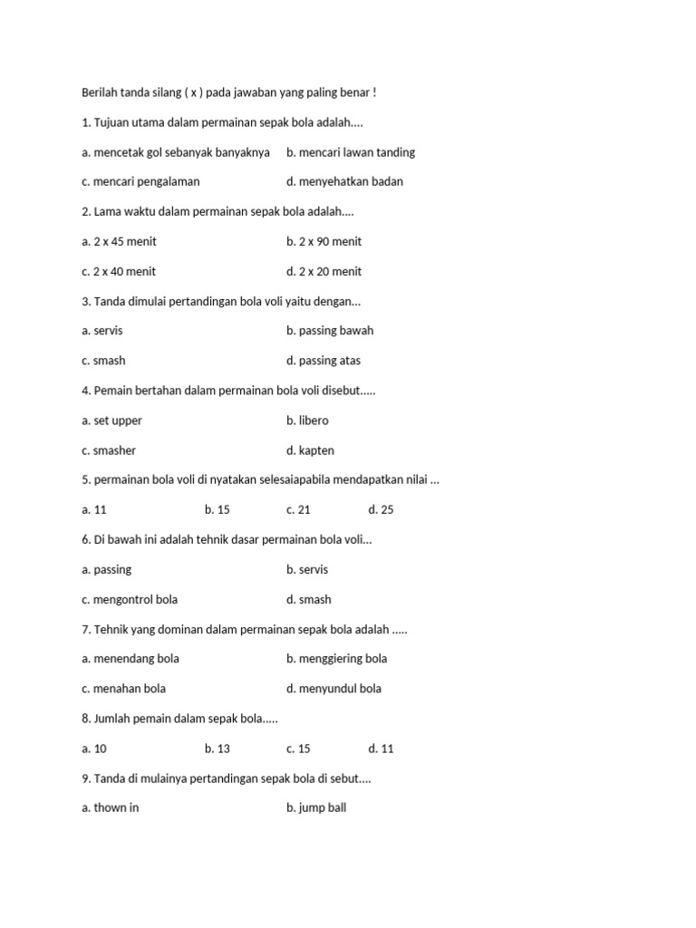 A. Berilah tanda silang ( x ) pada jawaban yang paling benar !