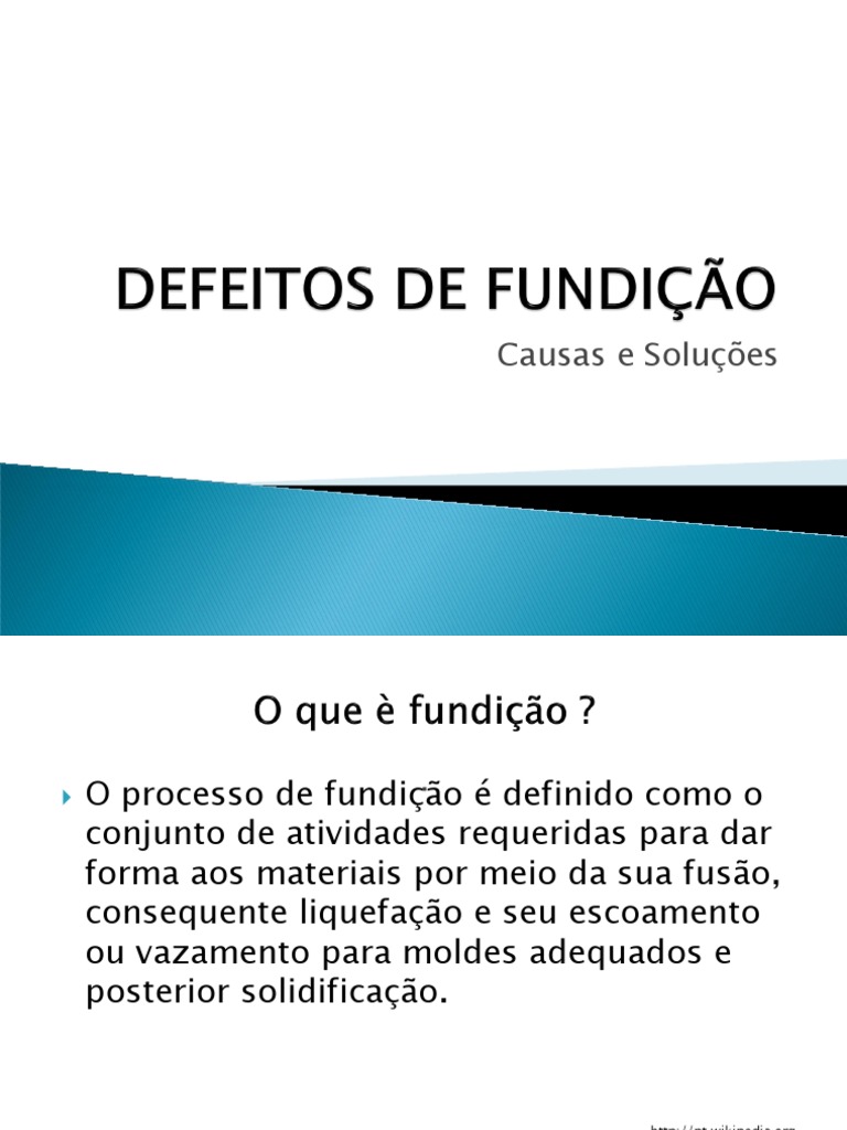 O processo de fundio definido como o conjunto de atividades requeridas para dar forma aos materiais por meio da sua fuso, consequente liquefao e seu escoamento ou vazamento para moldes adequados e posterior solidificao.