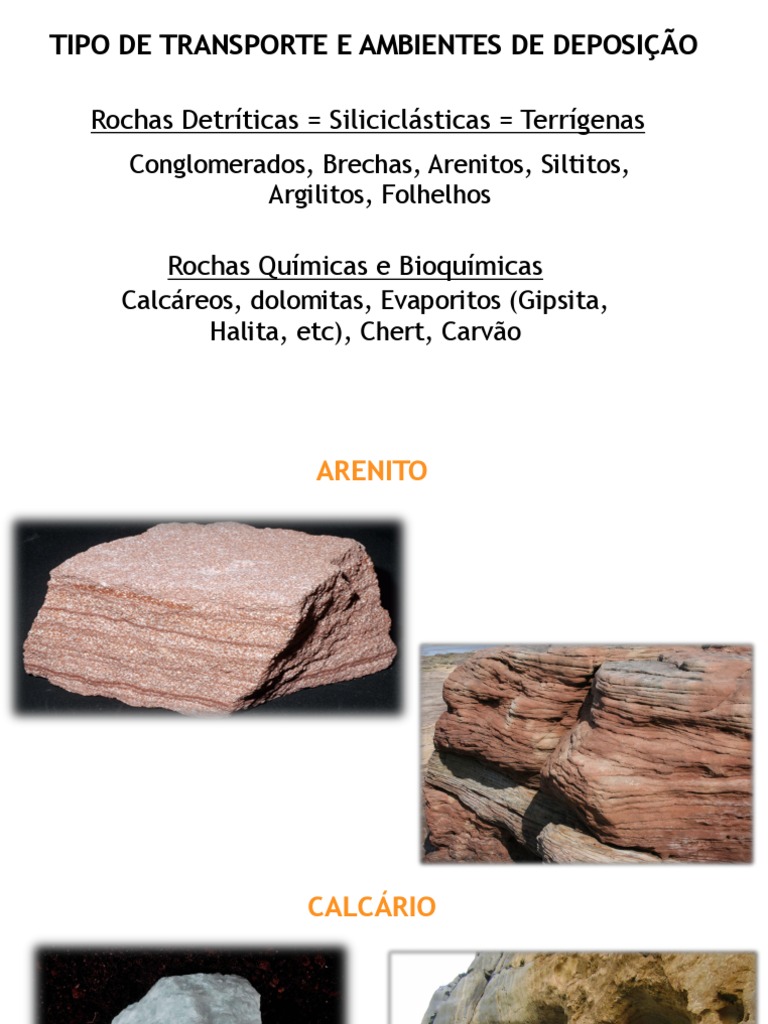 Rochas Qumicas e Bioqumicas Calcreos, dolomitas, Evaporitos (Gipsita, Halita, etc), Chert, Carvo