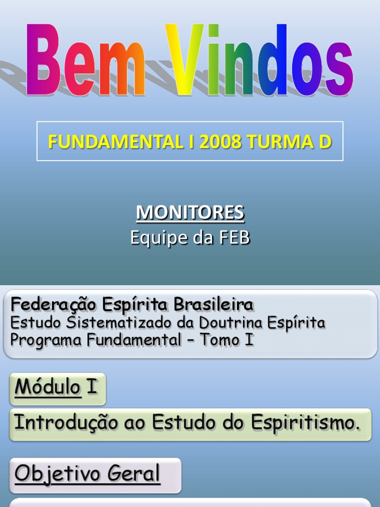 ROCHA, C. Estudo sistematizado da doutrina esprita: programa fundamental v. 1. Federao Esprita Brasileira, 2007. p.15-17.