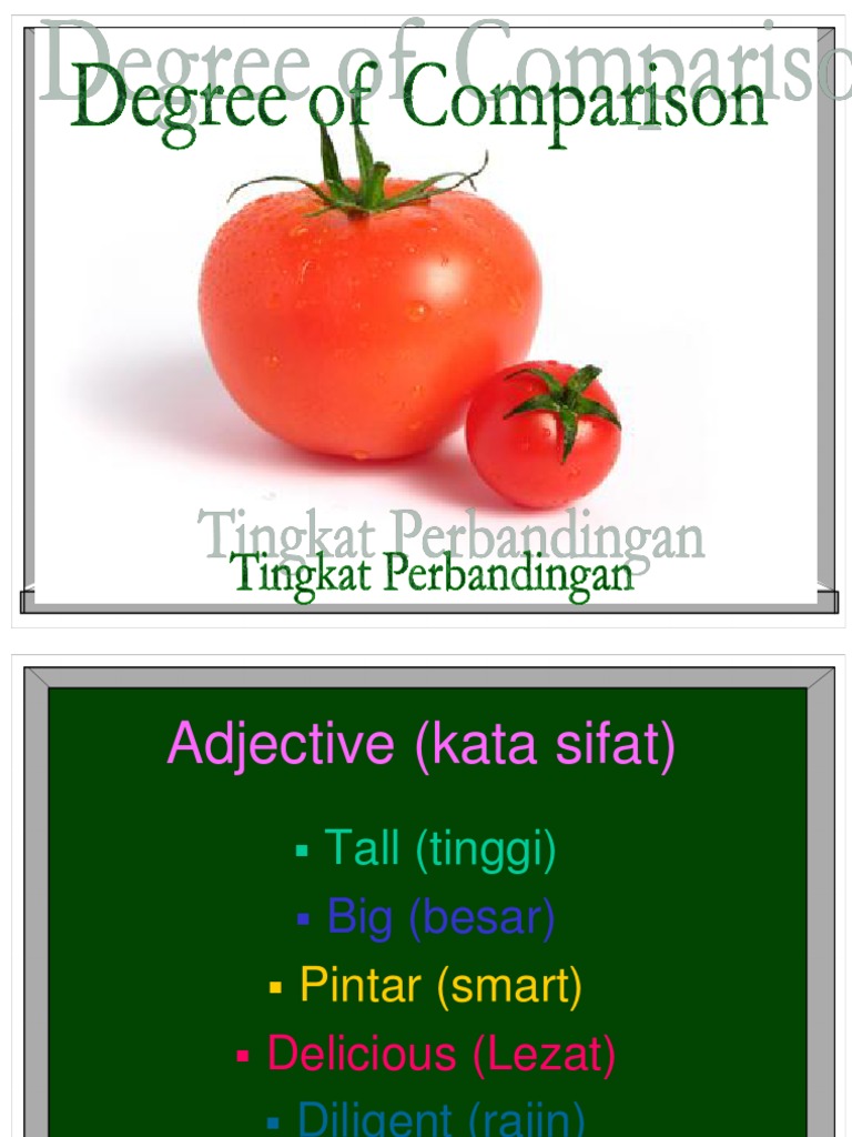 Positive : untuk mengatakan bahwa sesuatu sama Comparative: untuk mengatakan bahwa sesuatu lebih Superlatif: untuk mengatakan bahwa sesuatu paling