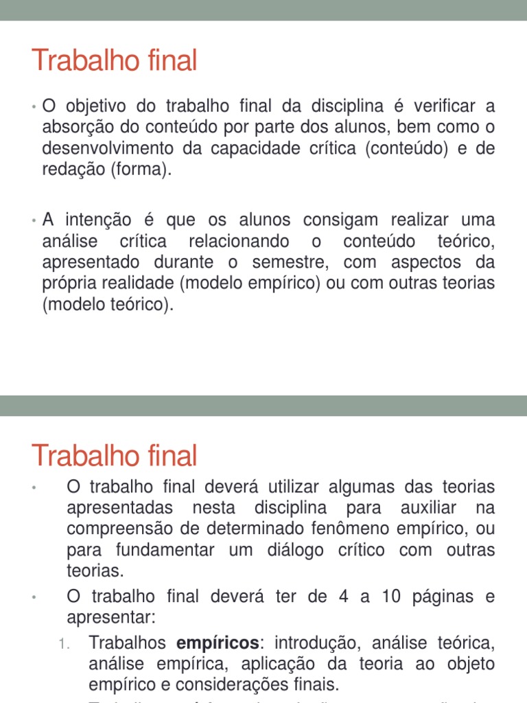 O trabalho final dever utilizar algumas das teorias