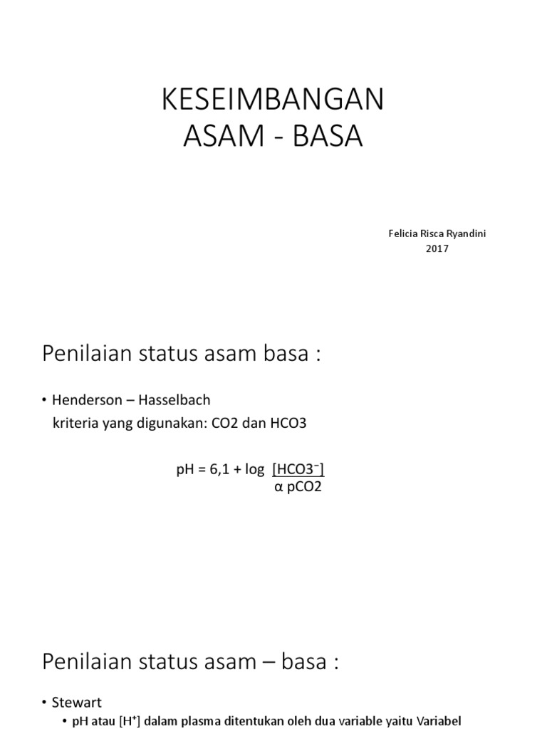 pH atau [H] dalam plasma ditentukan oleh dua variable yaitu Variabel