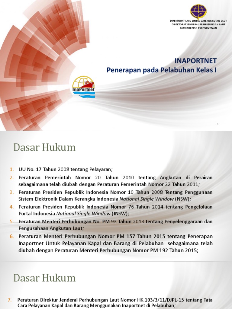 1. UU No. 17 Tahun 2008 tentang Pelayaran;