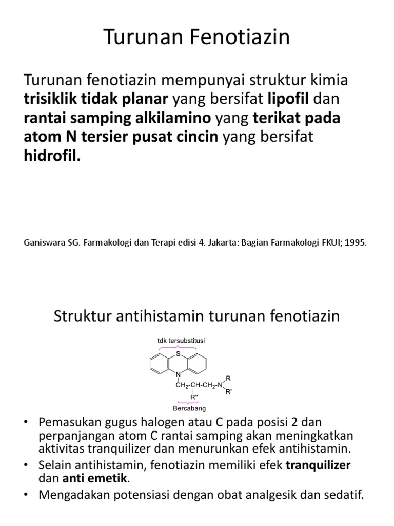 Selain antihistamin, fenotiazin memiliki efek tranquilizer