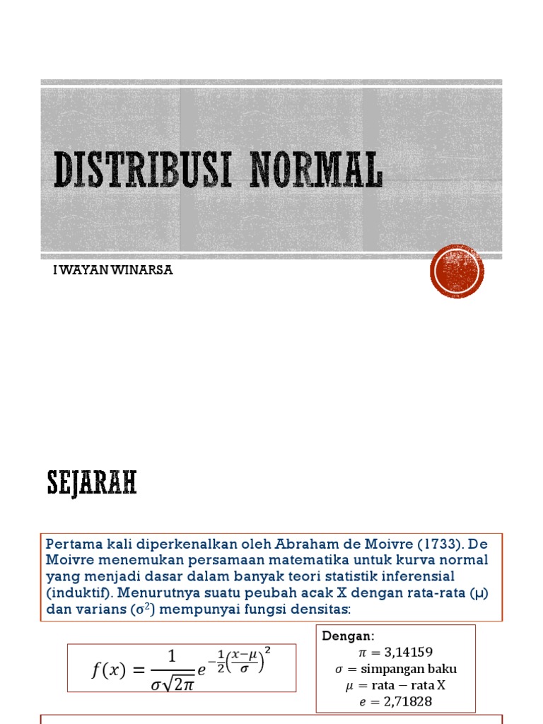 Pertama kali diperkenalkan oleh Abraham de Moivre (1733). De