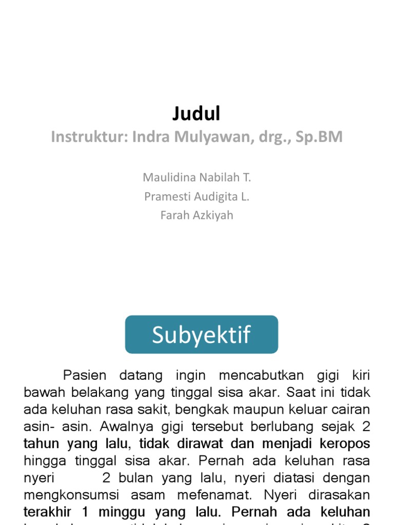 Instruktur: Indra Mulyawan, drg., Sp.BM