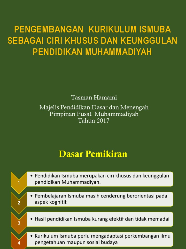• Pembelajaran Ismuba masih cenderung berorientasi pada