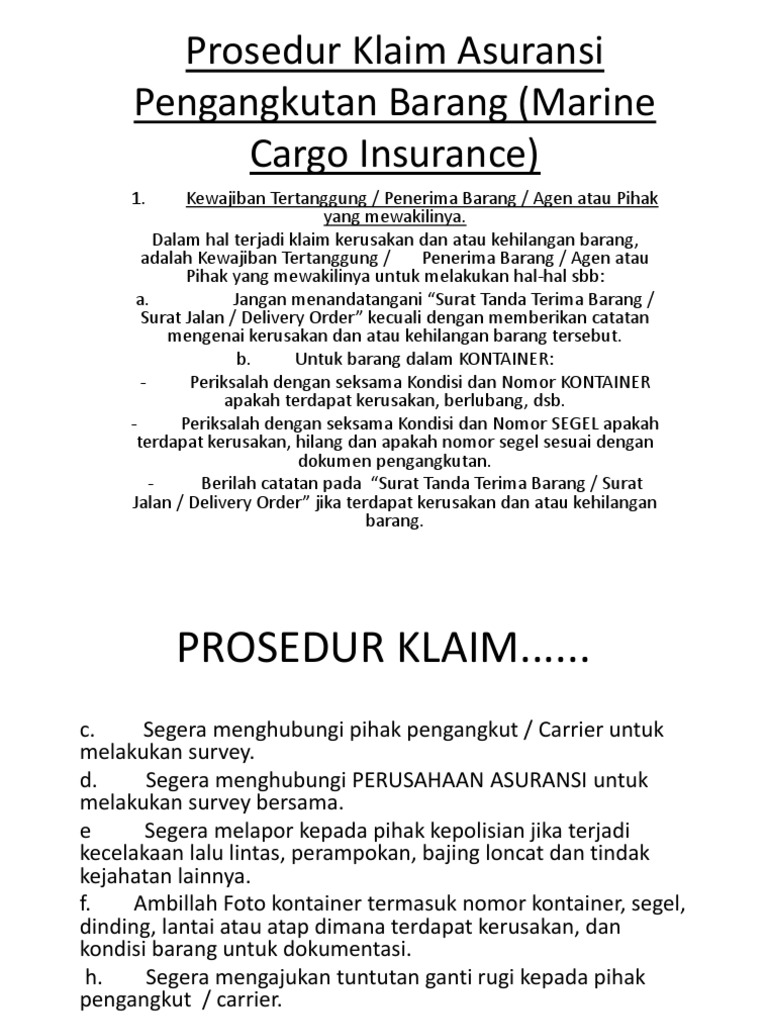 1. Kewajiban Tertanggung / Penerima Barang / Agen atau Pihak