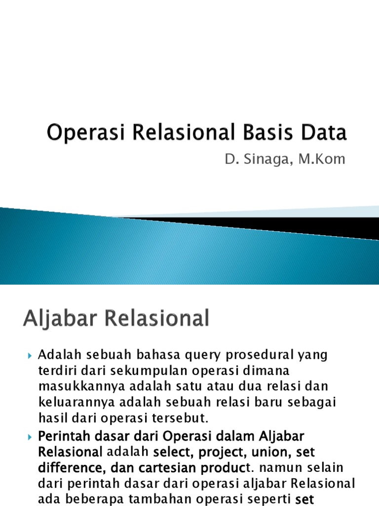 Notasi : r ∪ s= { x | x ∈ r , x ∈ r }