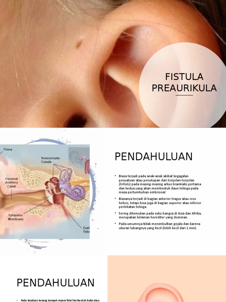 dengan ditemukannya muara fistula di sekitar telinga yang