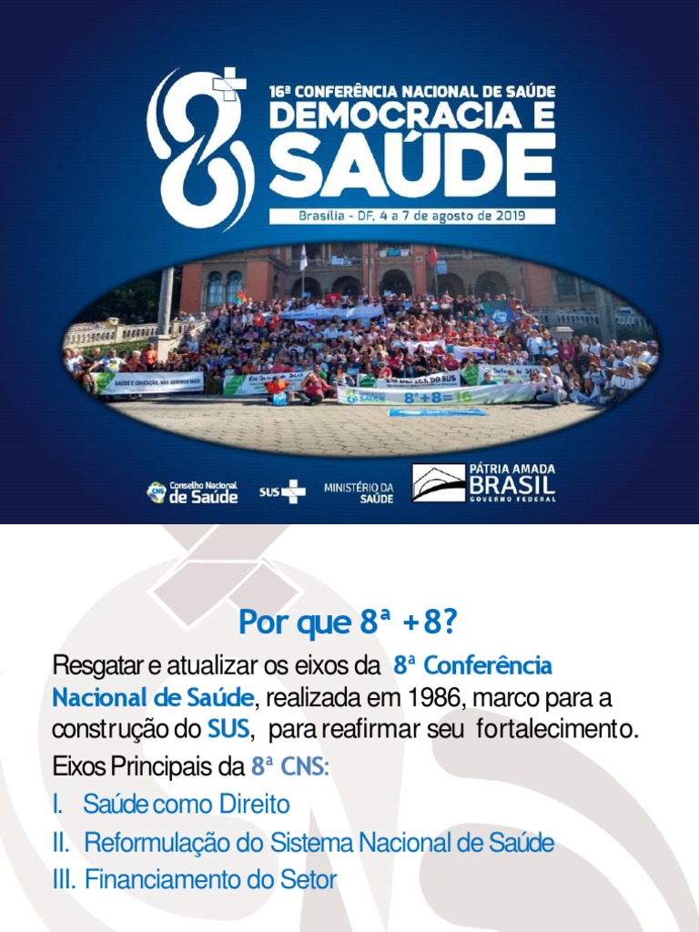base os objetivos, tema central e eixos de discussão da 16ª CNS(8ª+8)