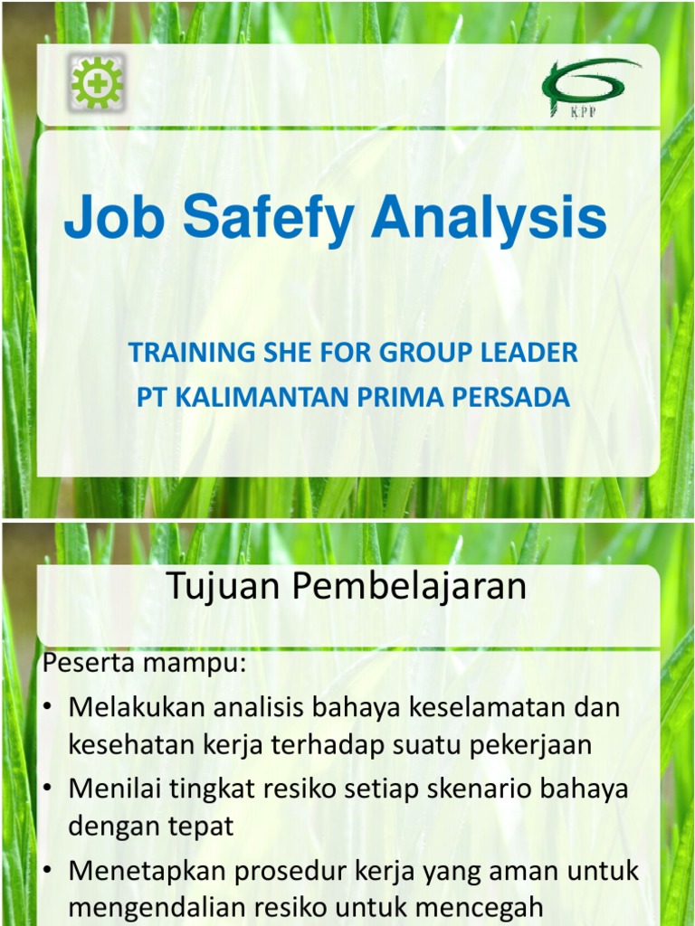 Training •Jenis pelatihan spesifik yang harus diberikan