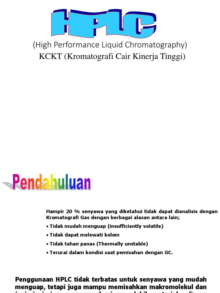 Penggunaan HPLC tidak terbatas untuk senyawa yang mudah