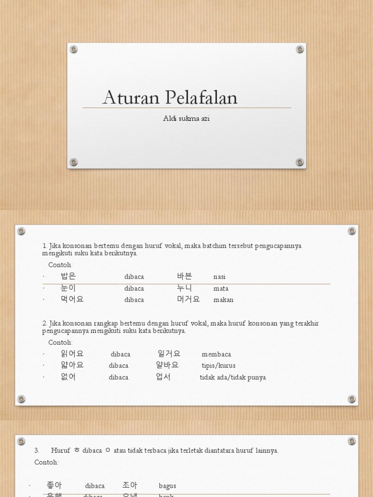 11. Suku kata yang berakhiran ㄱ,ㅋ,ㄲ dilafalkan dengan ㄱ, suku kata yang berakhiran dengan ㅂ,ㅍ